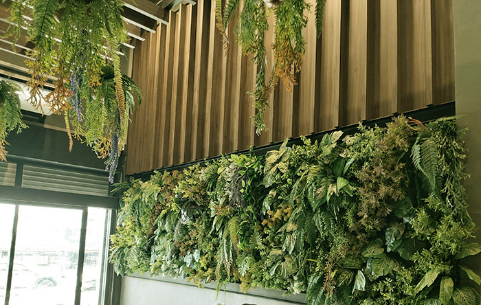 สวนผนังใบไม้เทียมและต้นไม้เทียม