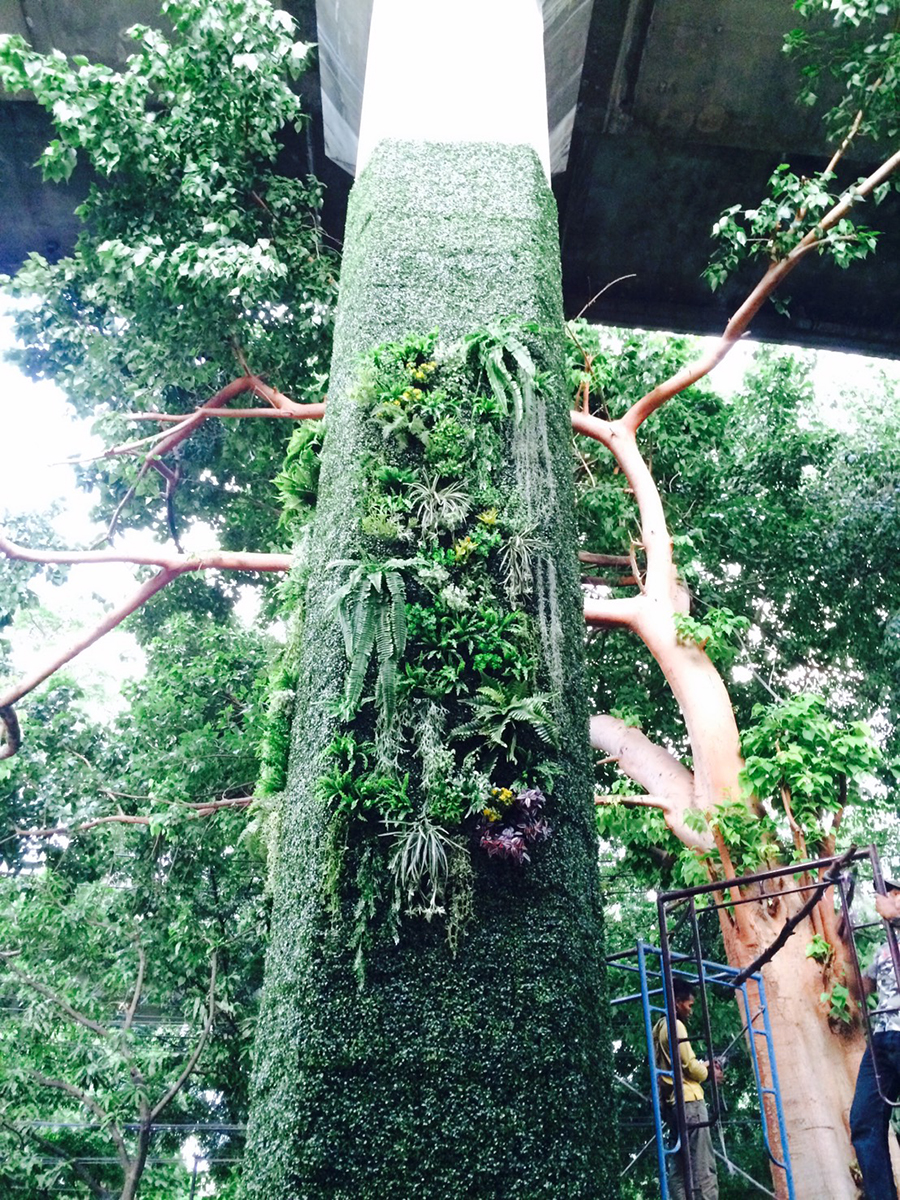 สวนแนวตั้งต้นไม้เทียมรอบเสา