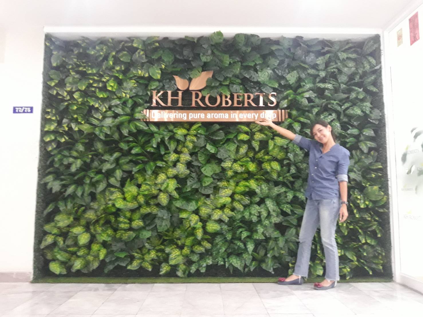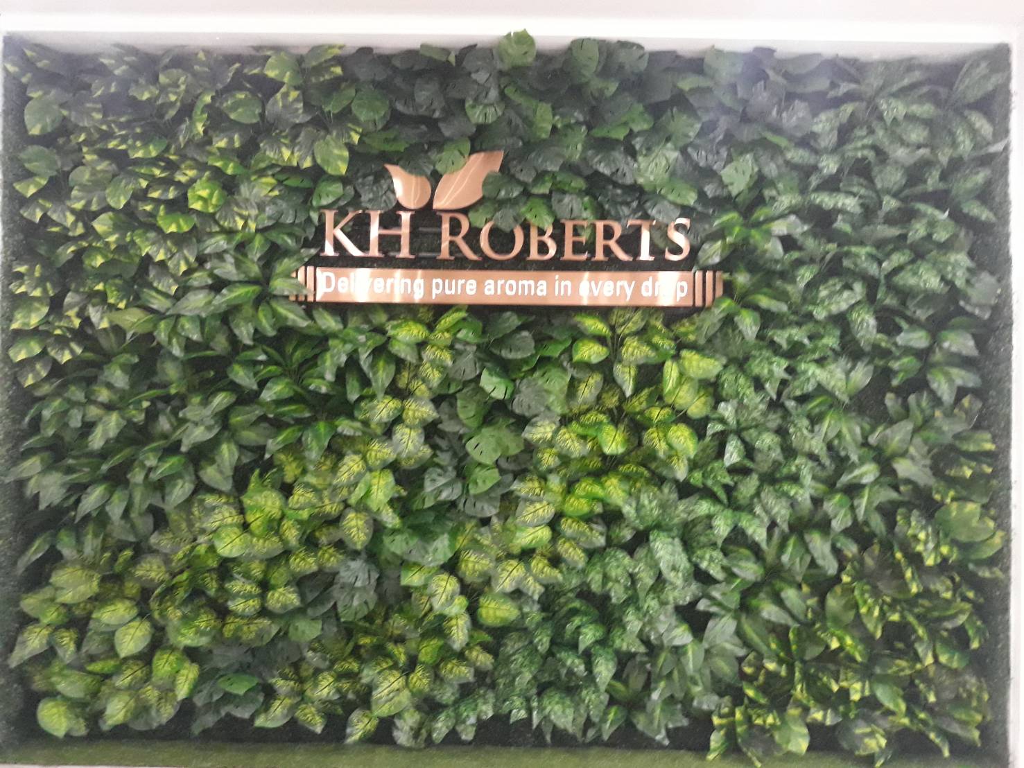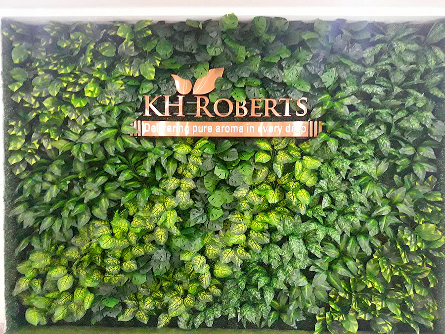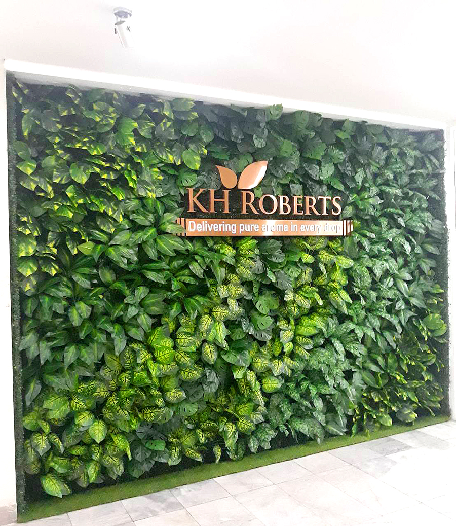 งานผนังต้นไม้เทียม กับป้ายชื่อ บริษัท