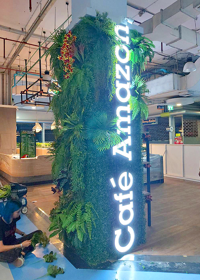 สวนผนังต้นไม้เทียม อเมซอล คาฟ่า หนองแค