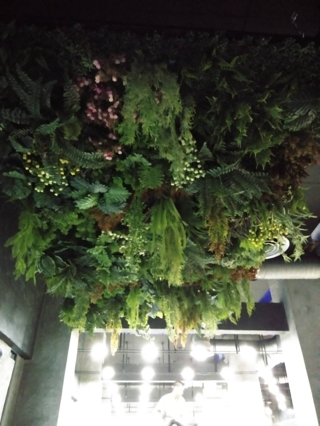 งานสวนแนวตั้งบนพื้นเพดาน ในส่วนร้านอาหาร บริษัท SONY ที่อมตะนคร ชลบุรี