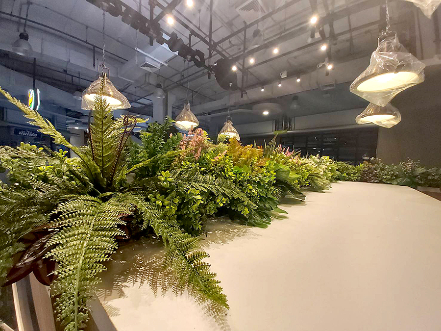 จัดสวนแนวตั้งและสวนเพดาน ต้นไม้เทียม