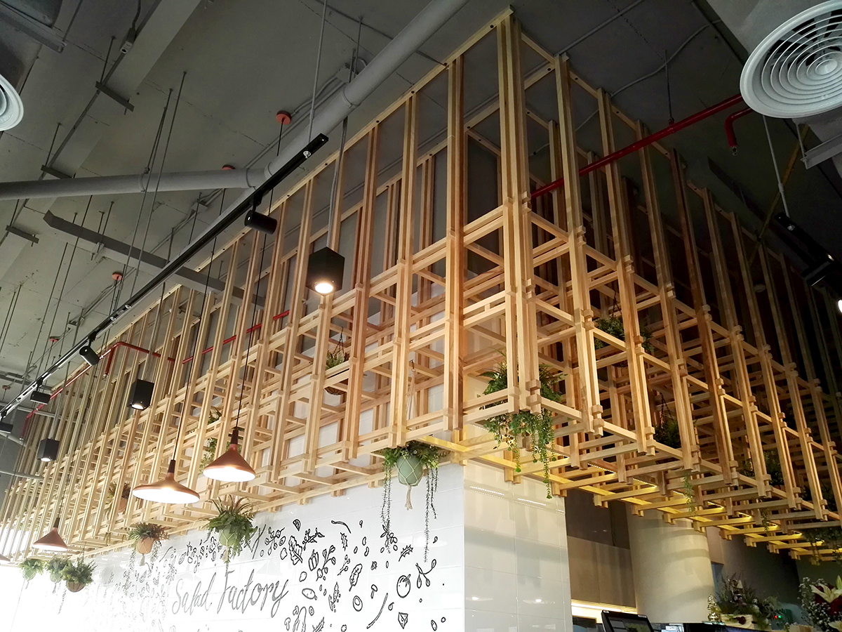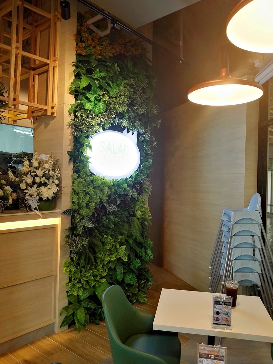 สวนผนังต้นไม้เทียม ที่ร้าน SALAD FACTORY
